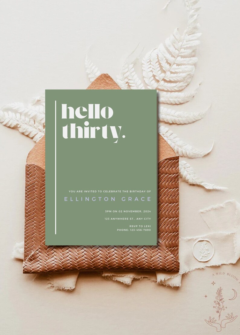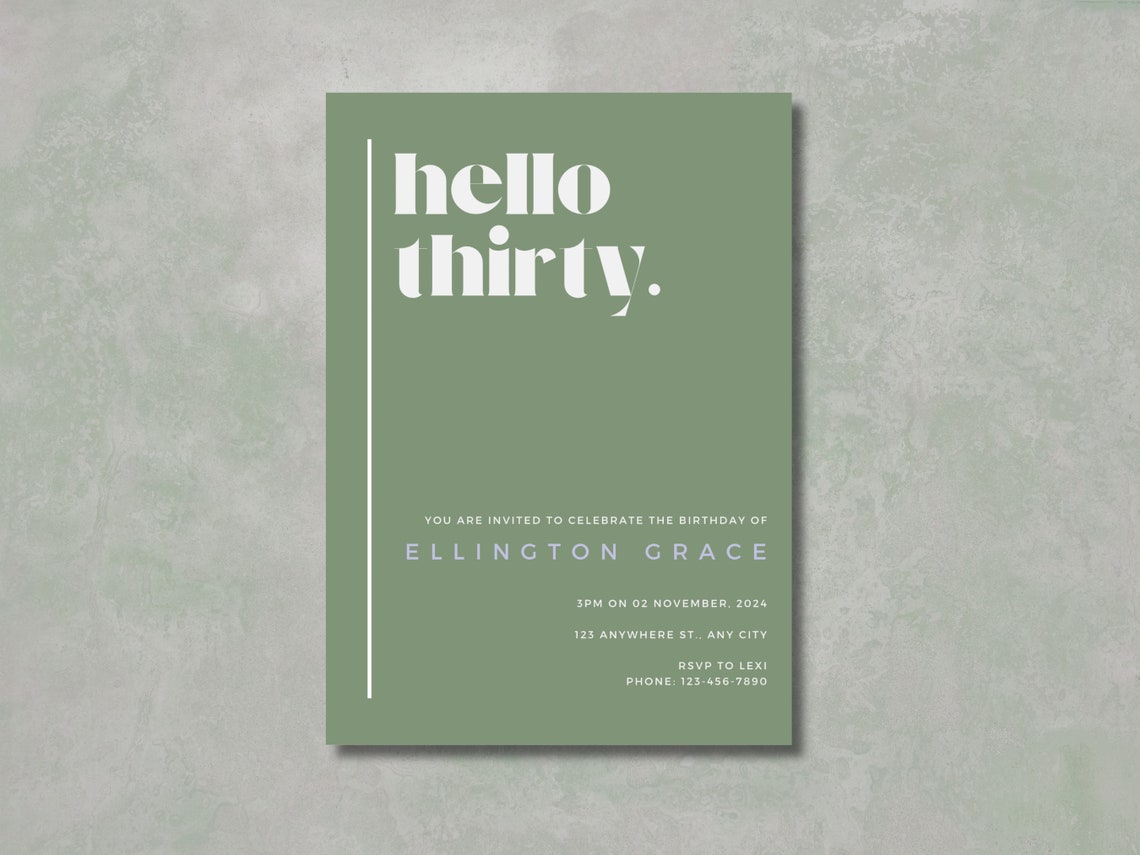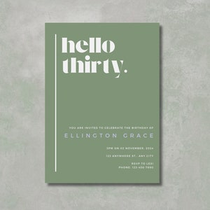 Green Hello Thirty Birthday Invitation, Instant Download, Canva ...