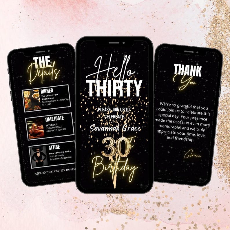 Hello Thirty 30th Birthday Digital Invitation, Party Video Invitation ...