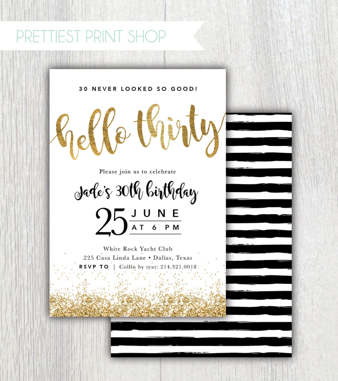 Printable Hello Thirty 30th Birthday Invitation Gold Glitter - Etsy