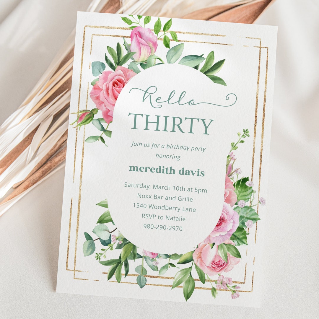 Pink Roses Hello Thirty Birthday Invitation Template, Printable ...