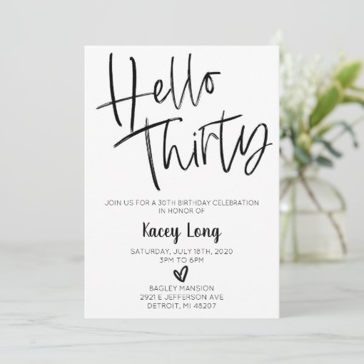 Hello Thirty 30th Birthday Invitation | Zazzle.com