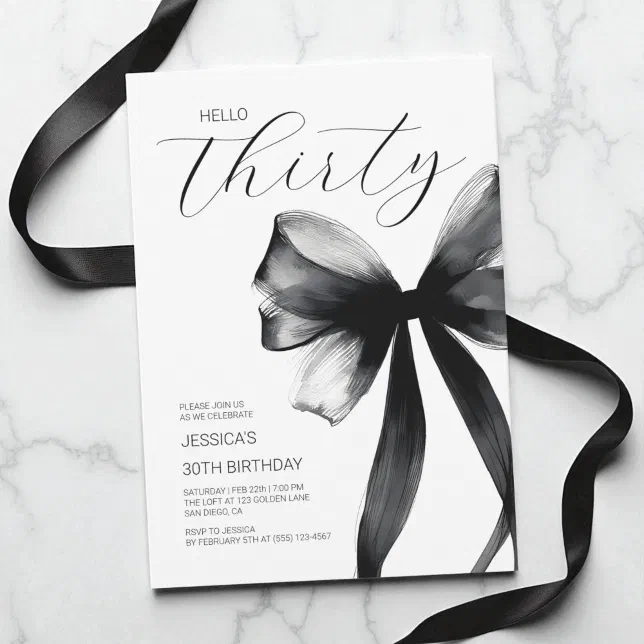 Hello Thirty Elegant Script Chic Bow 30th Birthday Invitation | Zazzle