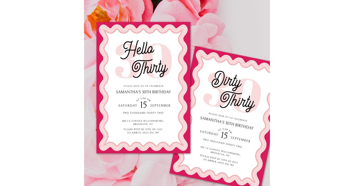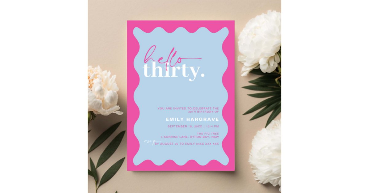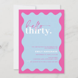 Hello Thirty Pink Curvy Groovy 30th Birthday Invitation | Zazzle