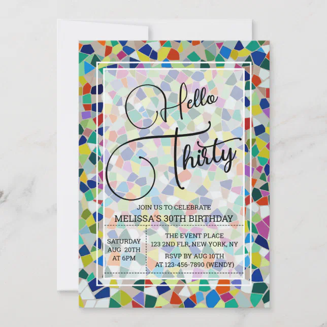 Stylish Colorful Mosaic Hello Thirty 30th Birthday Invitation | Zazzle
