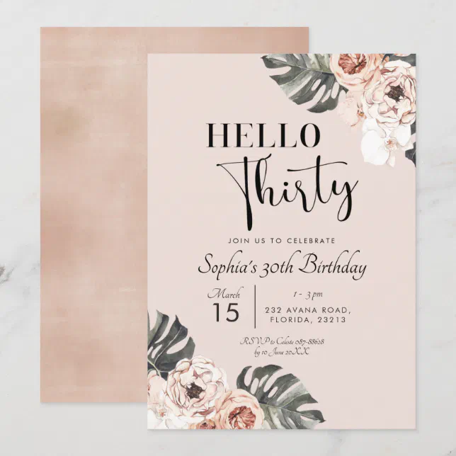 Hello Thirty Pink Rose Gold 30th Any Age Birthday Invitation | Zazzle