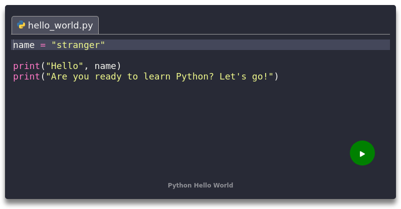 Python Hello World - Python 3 code example - crumb.sh