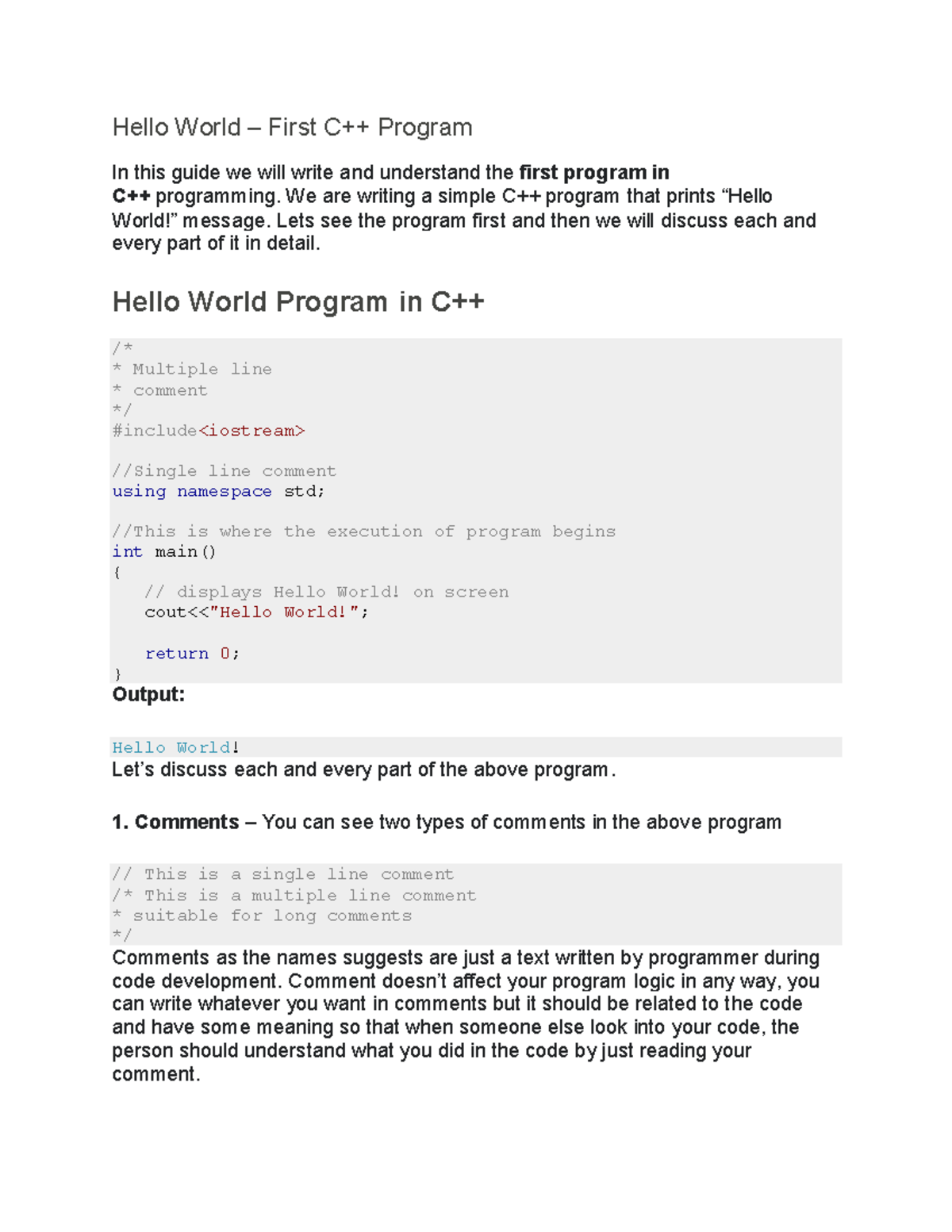 Hello World - 1ST YEAR (EE) - Hello World – First C++ Program In this ...