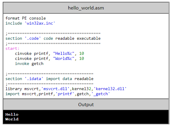 (a)-(b) Examples of code to display 'Hello, World!' on the screen with ...