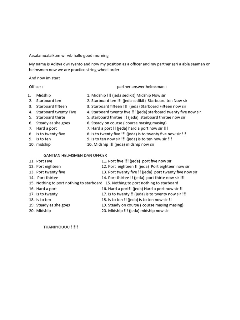 HELMSMAN ORDERS AND COMMANDS / ABLE BODIED SEAMAN / assigned as ...