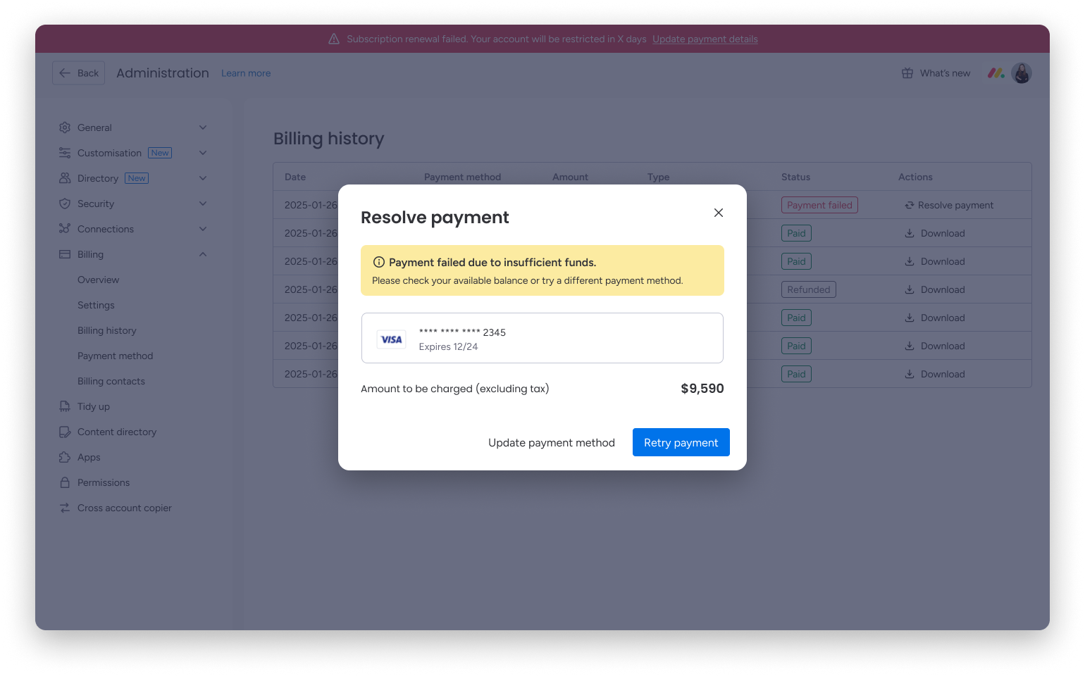 Having Trouble Paying - “Payment Failed” Error Message : Hip Support