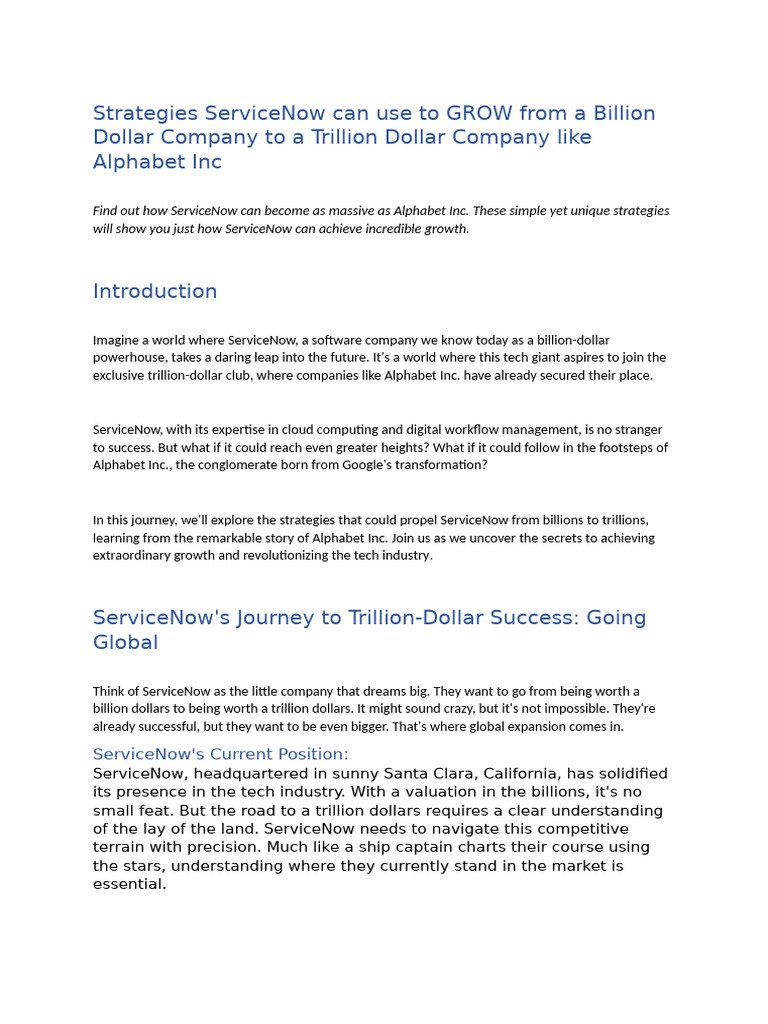 Unlocking Growth: Strategies for ServiceNow's Billion to | Course Hero