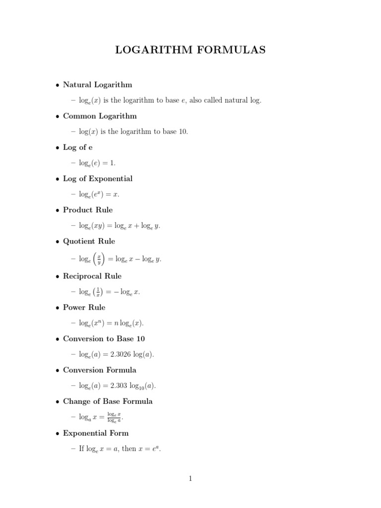 Logarithms Formula Sheet | PDF | Logarithm | Combinatorics - Worksheets ...