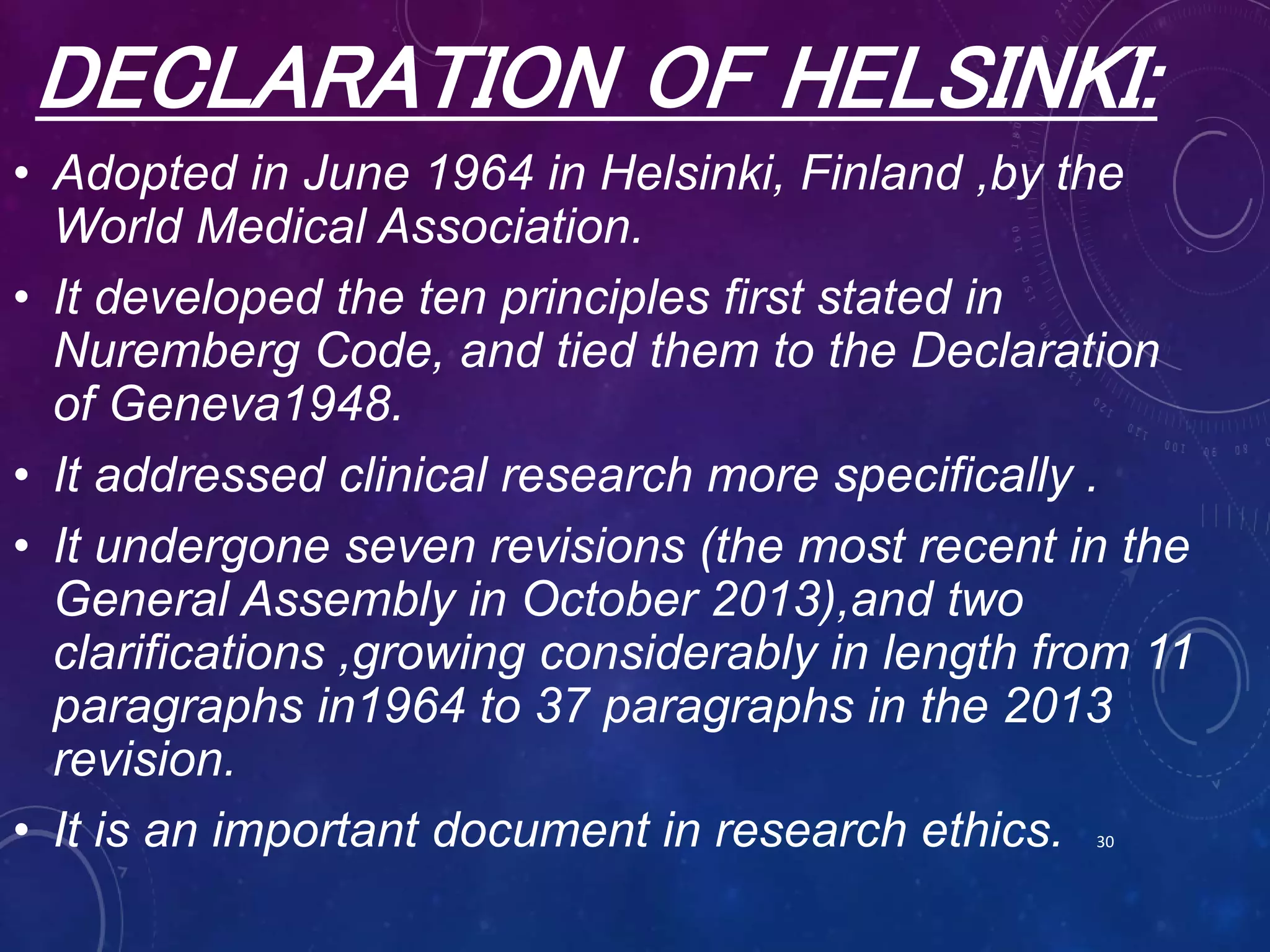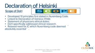 DECLARATION OF HELSINKI - History and principles | PPTX