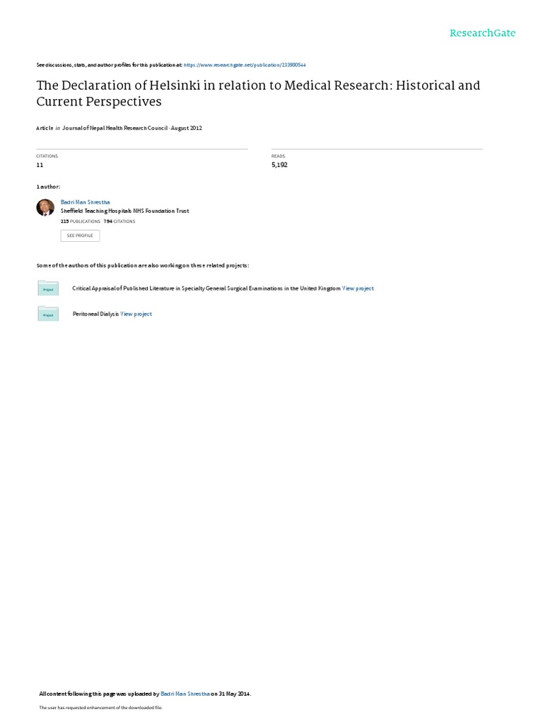 (PDF) The Declaration of Helsinki in relation to Medical Research ...