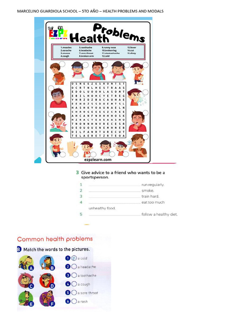 Health Problems - Ezpzlearn.com - Worksheets Library