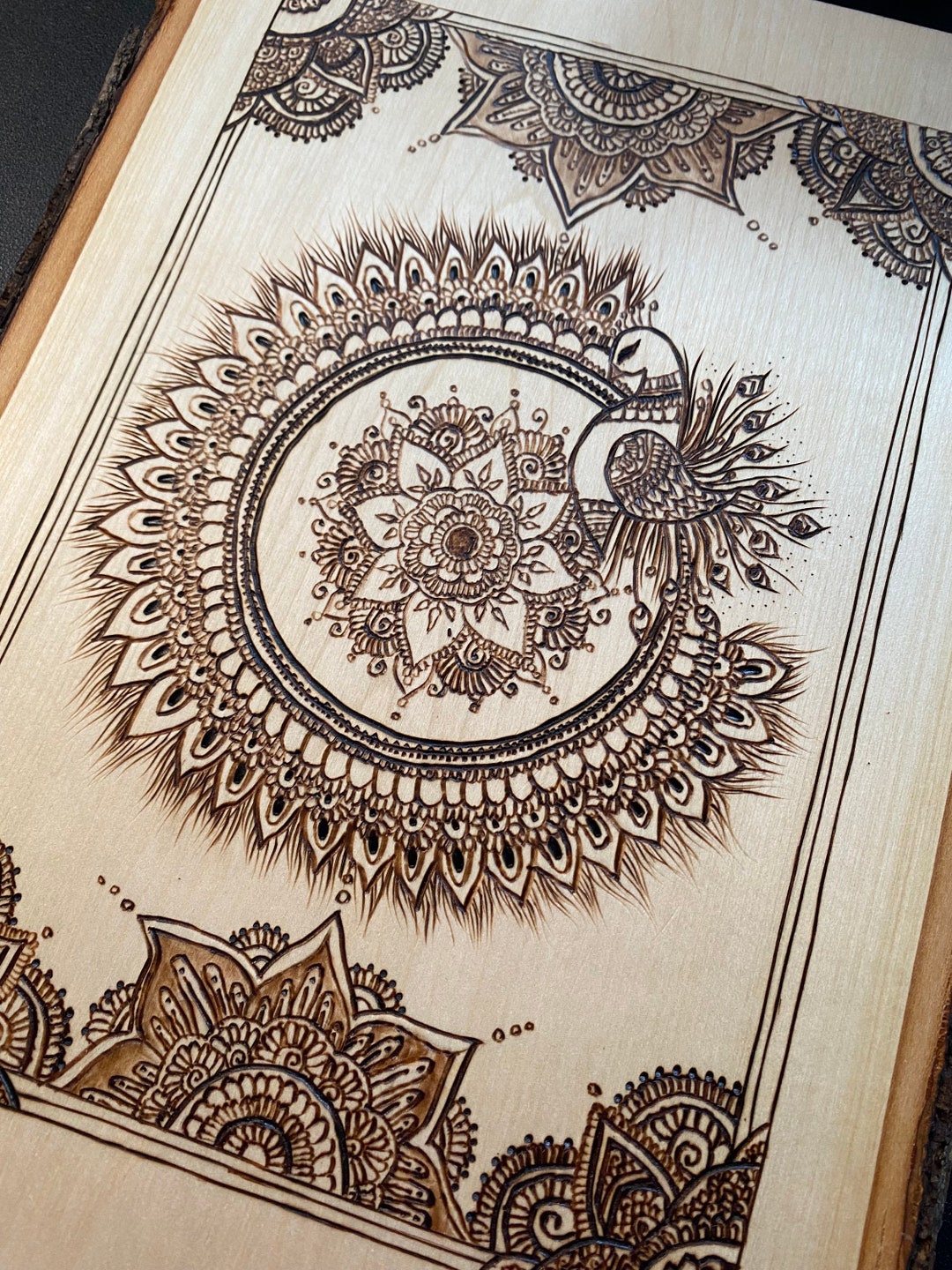 Peacock Henna (mehndi) Inspired Pyrography Piece - Etsy