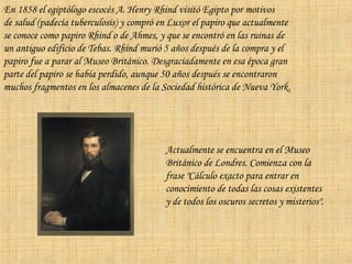 Matemáticas antiguas El papiro Rhind (c. 1650 a.C.), adquirido por el ...