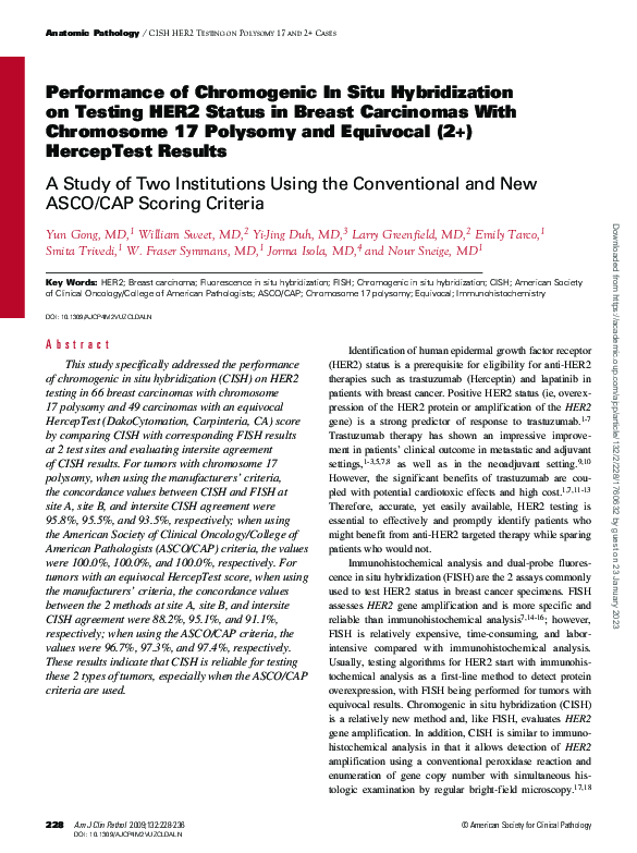 (PDF) Performance of Chromogenic In Situ Hybridization on Testing HER2 ...