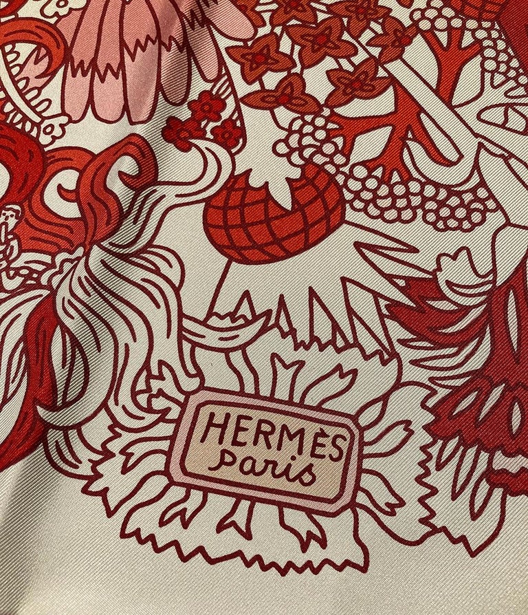 NWT Hermes Cache Cache Fleur Scarf 90 Blanc Rouge Rose For Sale at 1stDibs