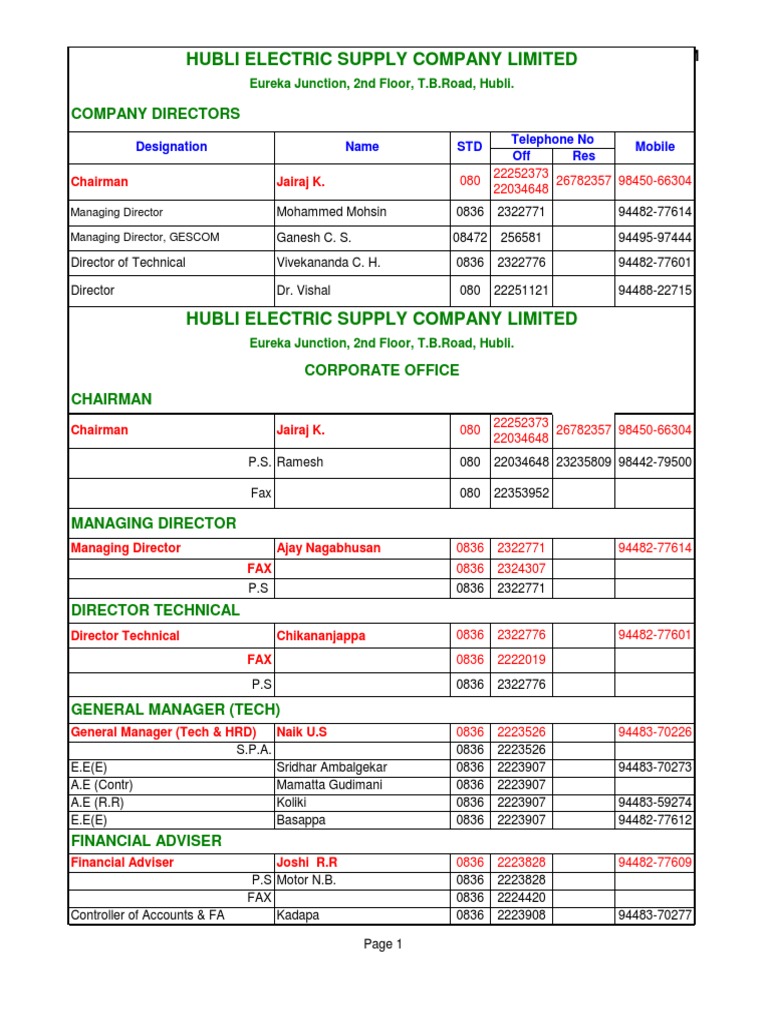 HESCOM Contact Information Directory | PDF