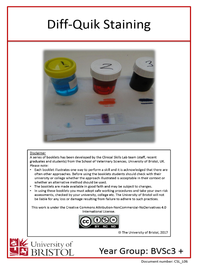 Diff-Quik Staining Protocol Guide | PDF | Staining | Microscopy