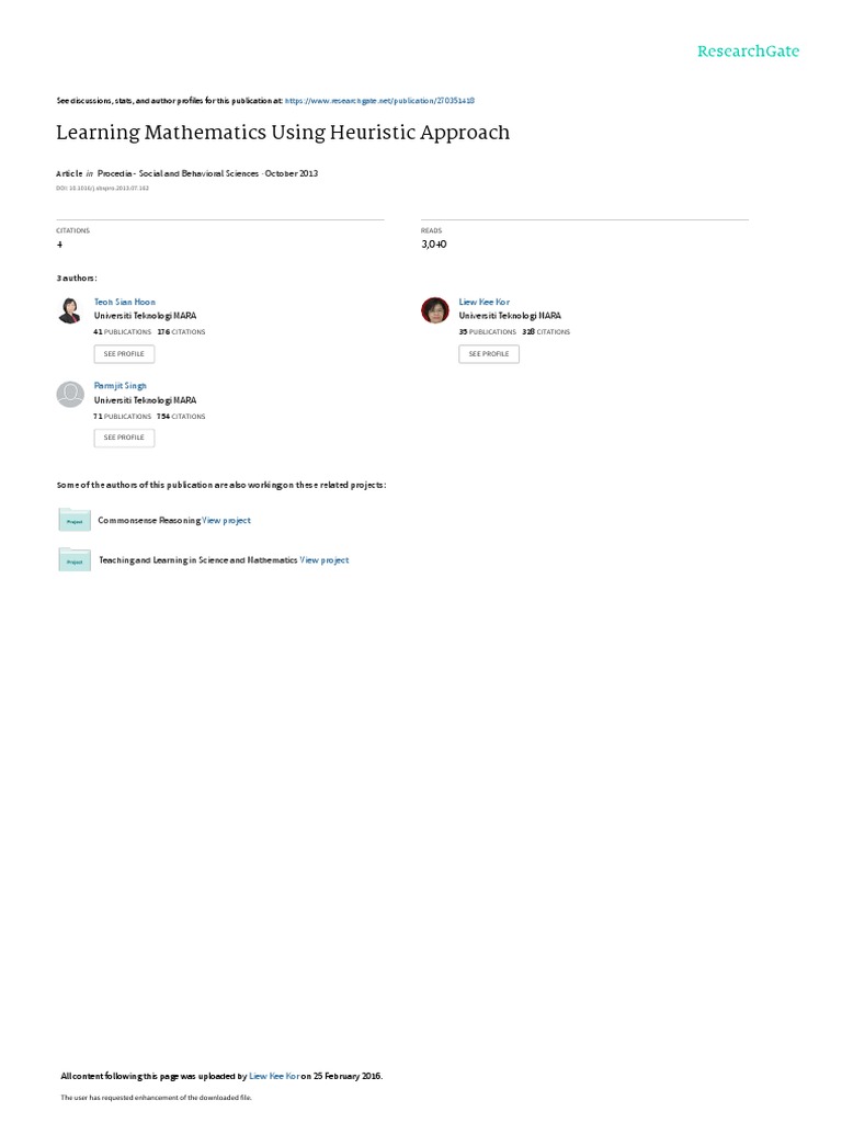 Learning Mathematics Using Heuristic Approach PDF | PDF | Heuristic ...