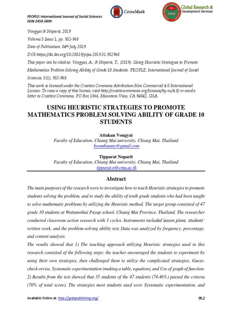 Using Heuristic Strategies To Promote Mathematics Problem Solving ...