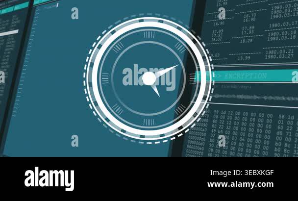 Red panel sliding right revealing code, pulsing HUD markers and hex ...