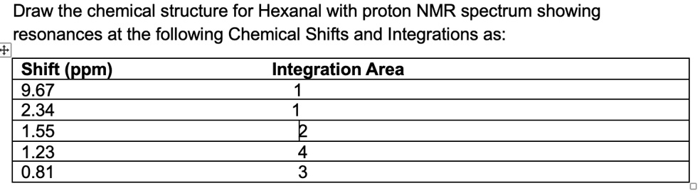 Draw the chemical structure for Hexanal with proton NMR spectrum ...