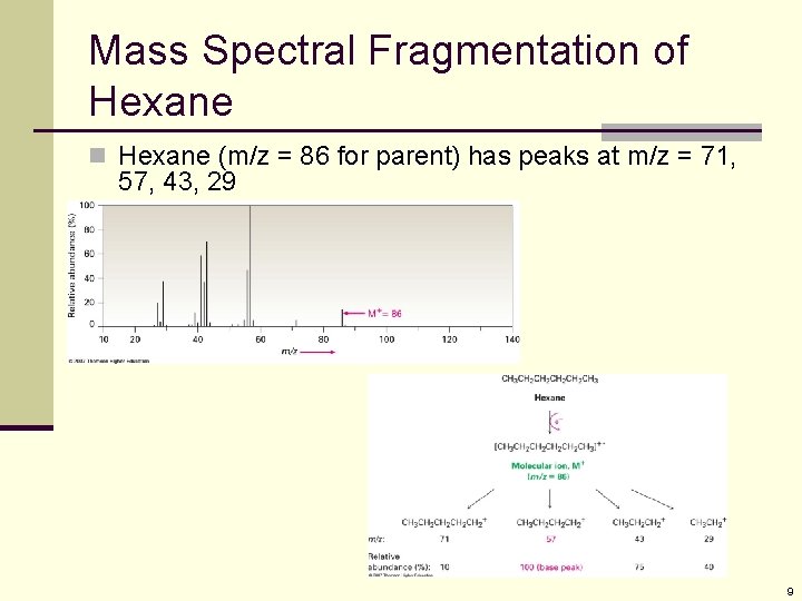 mass spectrum of hexane fragmentation pattern of m/z m/e ions for ...