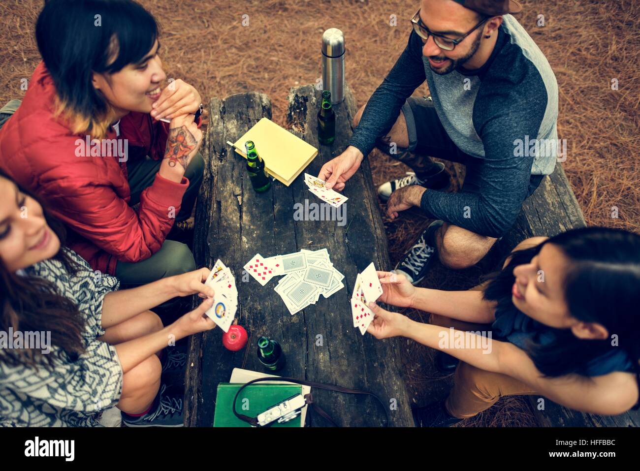 Friends Camping Playing Cards Concept Stock Photo - Alamy
