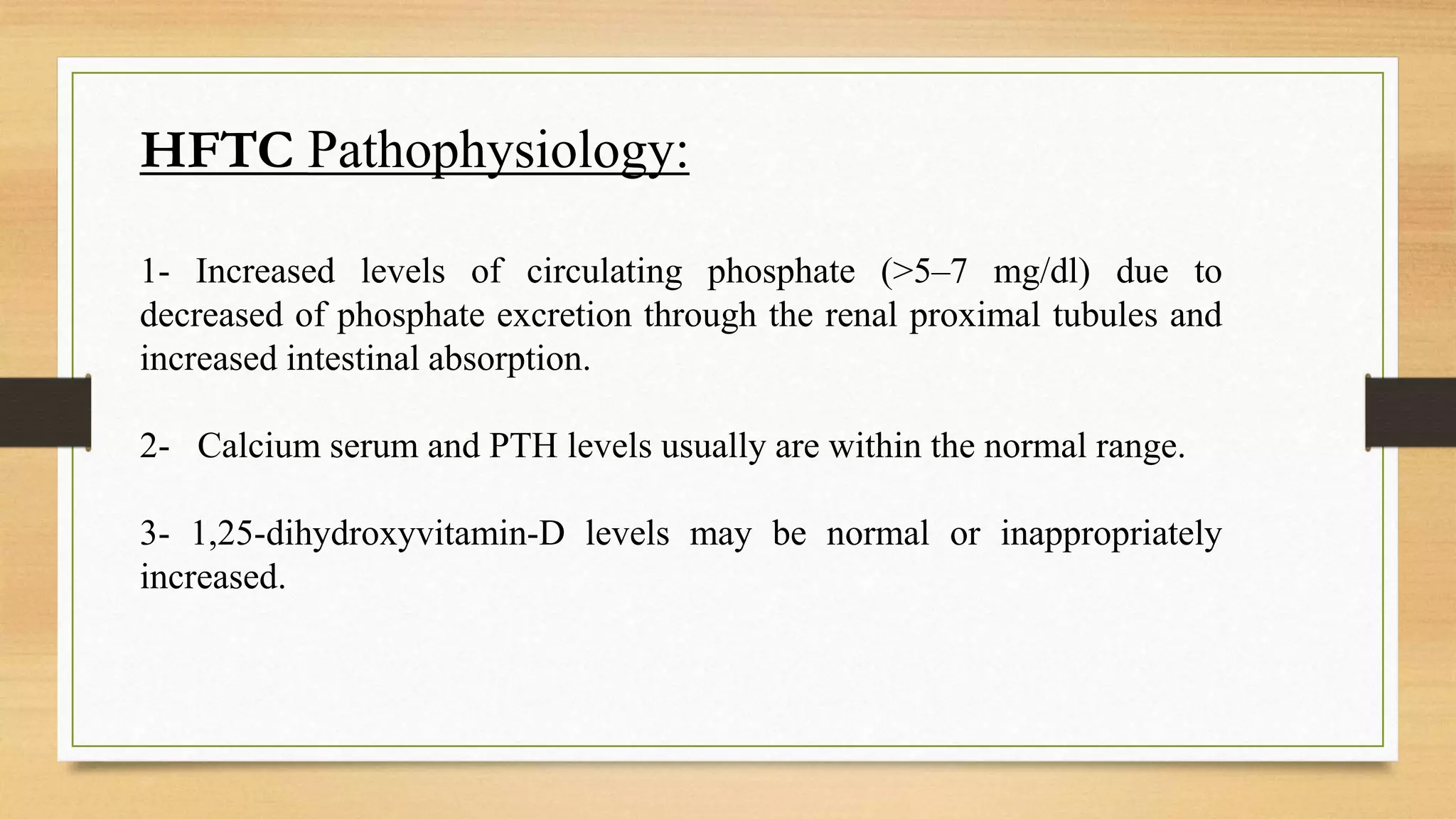 Pathophysiology of HFTC/HHS. Osteocytes sense serum phosphate level ...