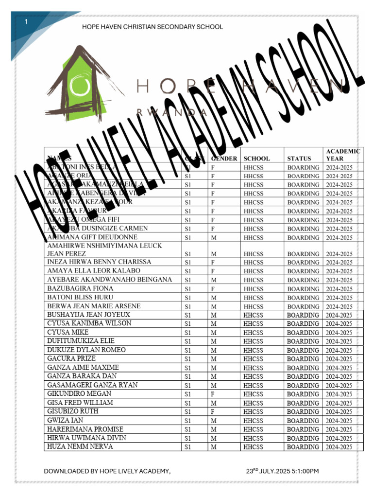 Hope Haven School Senior One 2024-2025 | PDF