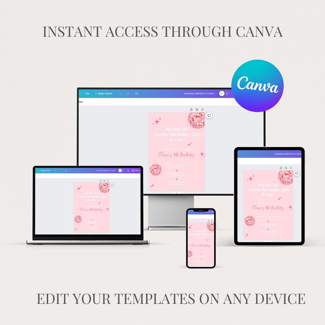 It’s Me, Hi — Birthday Girl Party Invite Template | Editable in Canva ...