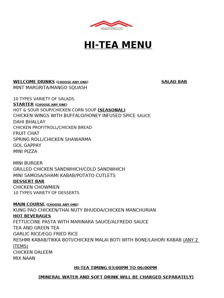 High Tea Menu | Indian Coffee, Masala Tea, Cheese Straws