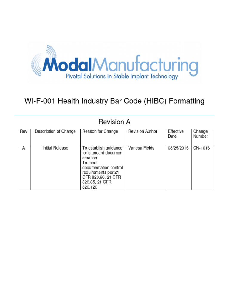 WI-F-001 HIBC Bar Code Formatting Rev A | PDF | Barcode | Specification ...