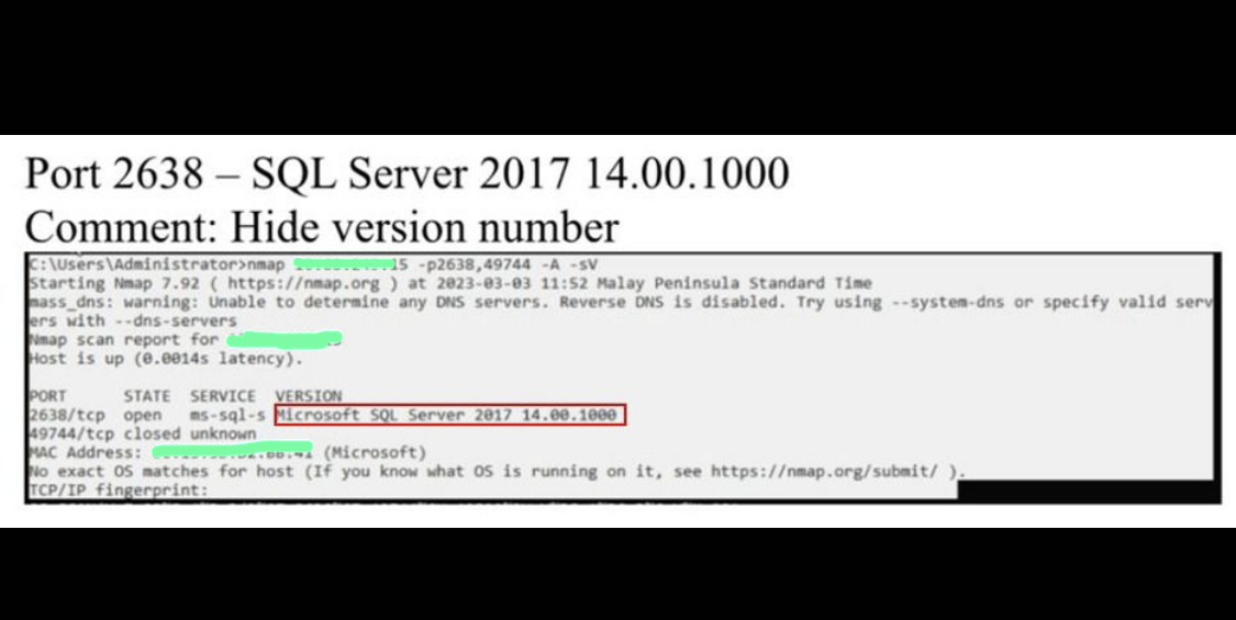 How to hide sql version number from nmap -sV output? - Microsoft Q&A