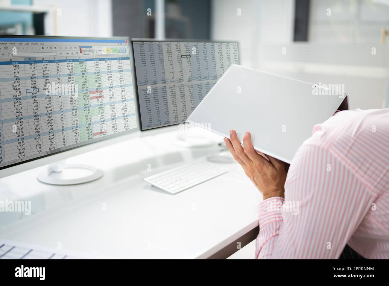 Embarrassed Businessman Hiding Under Laptop Computer Stock Photo - Alamy