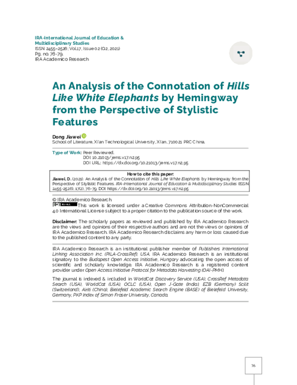 (PDF) An Analysis of the Connotation of Hills Like White Elephants by ...