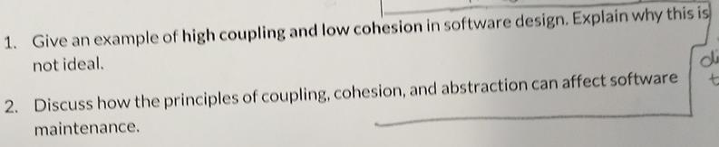 Solved Give an example of high coupling and low cohesion in | Chegg.com