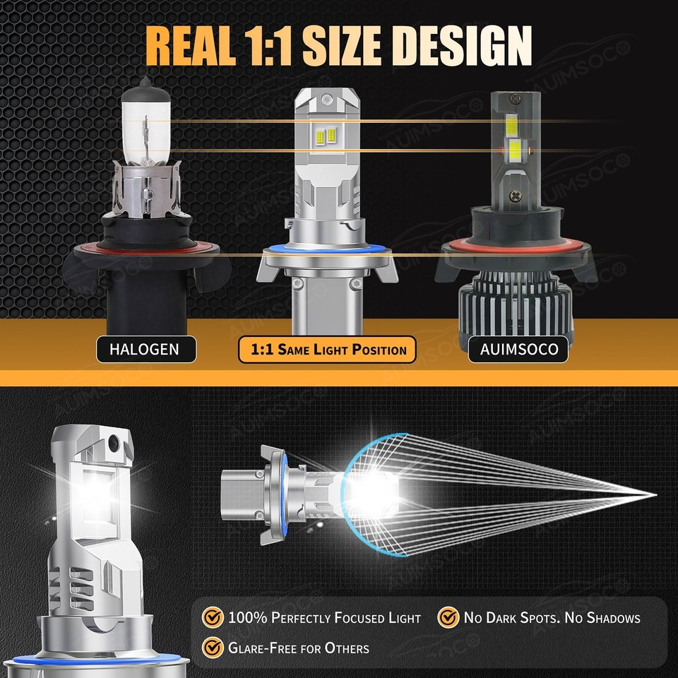 AUXITO 4/Set H4 Headlight LED Globe Light 6500K Beam Low+High White ...