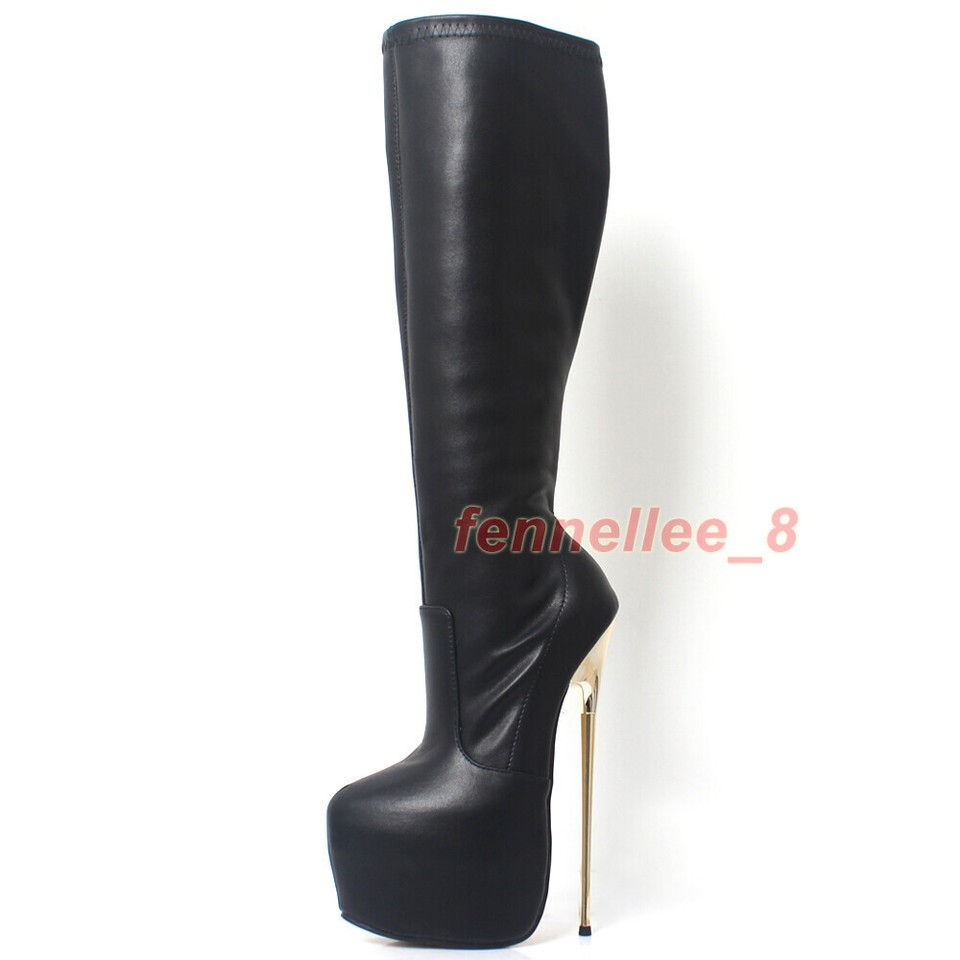 22cm Gold Metal Ultra High Heel Boots Knee High PU Leather Zipper ...