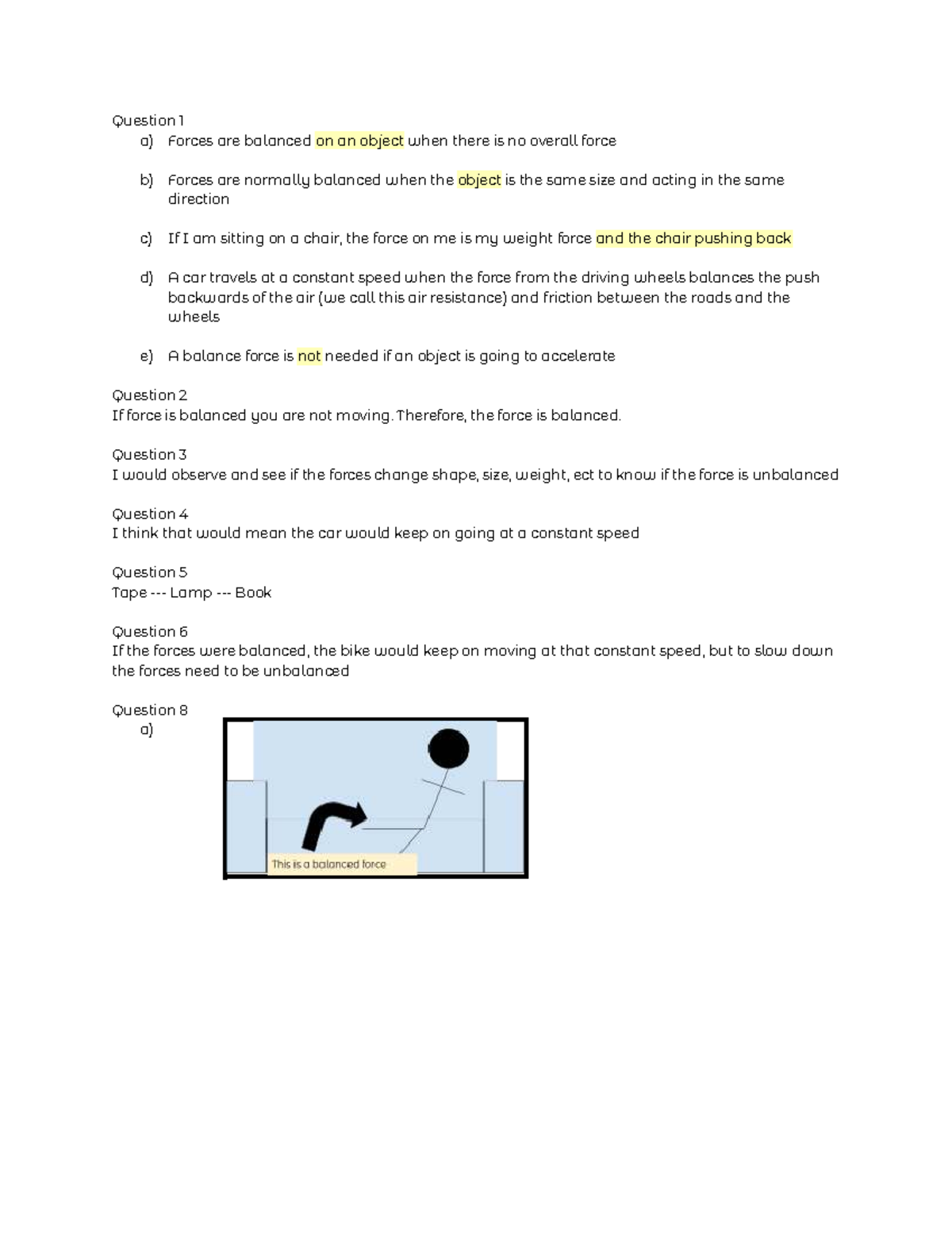 Balanced and Unbalanced Forces - Concepts and Examples - Studocu