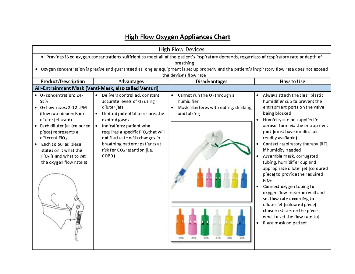 2021 High Flow Oxygen Appliances Chart: Devices, Usage & Tips - Studocu