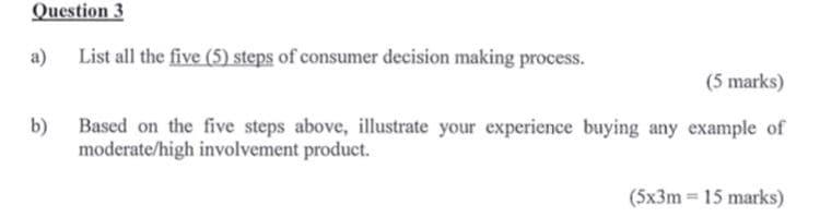 Solved Question 3 a) List all the five (5) steps of consumer | Chegg.com