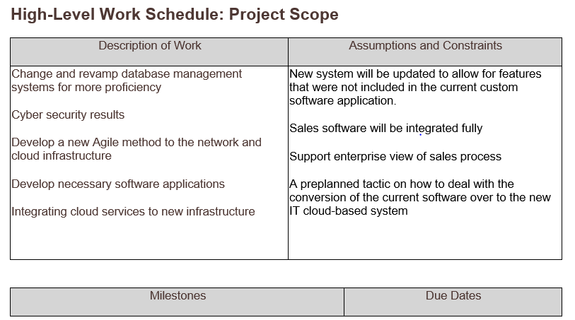 High-Level Work Schedule: Project Scope Description | Chegg.com