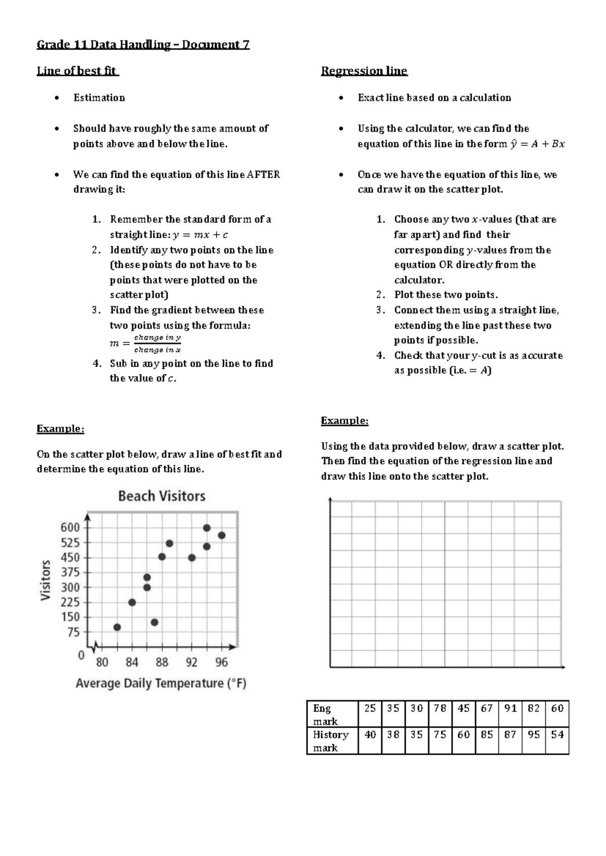Grade 11 Data Handling: Line of Best Fit & Regression Analysis - Studocu