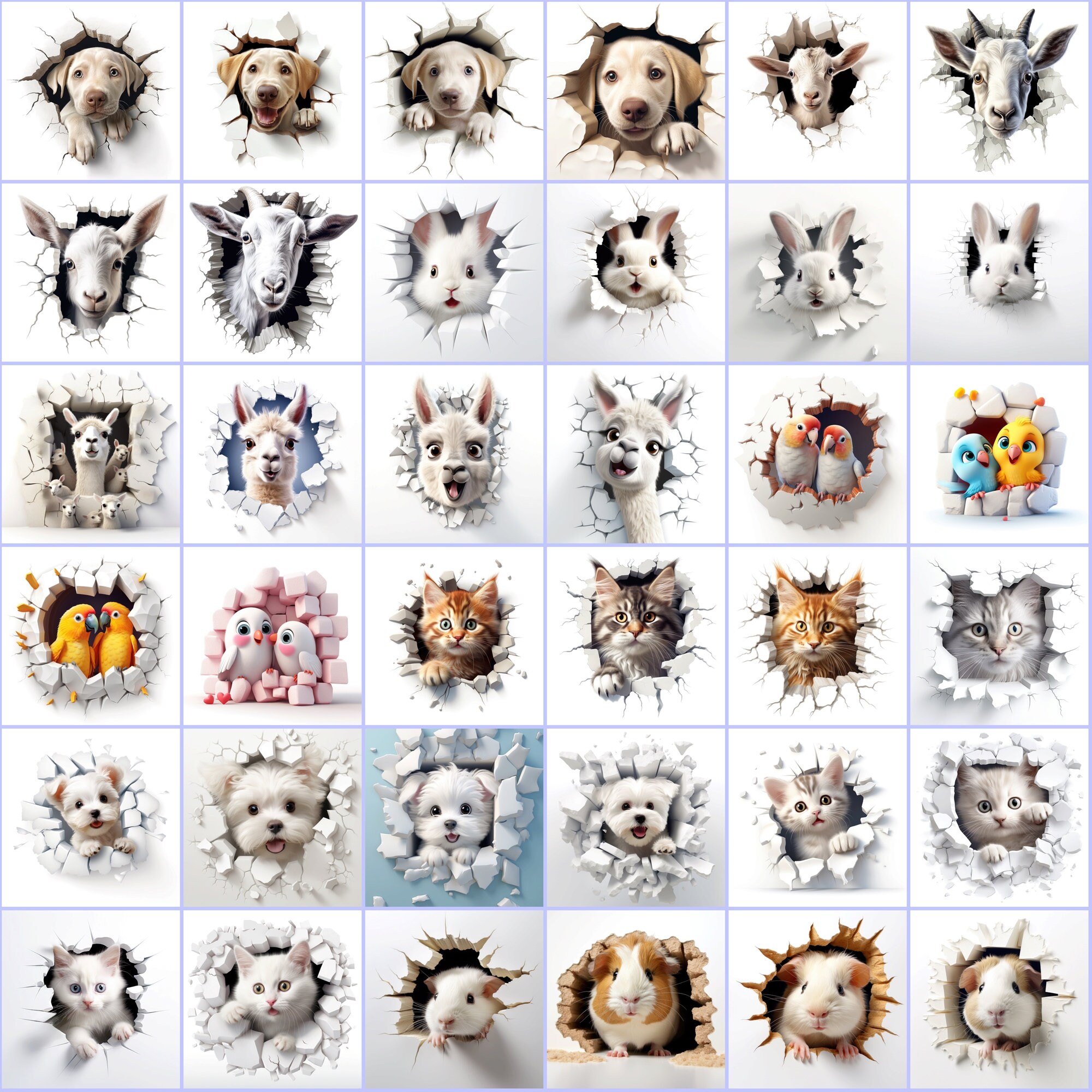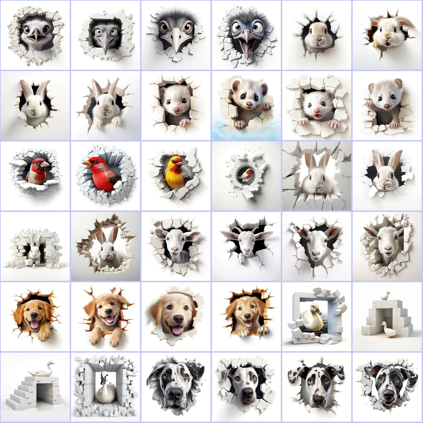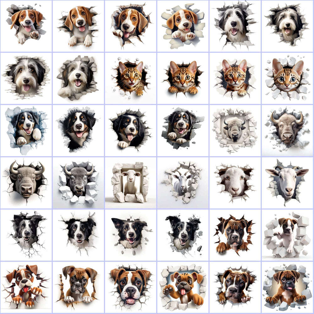400 High-Res Animal Wall Breakthrough PNGs, Commercial License Include