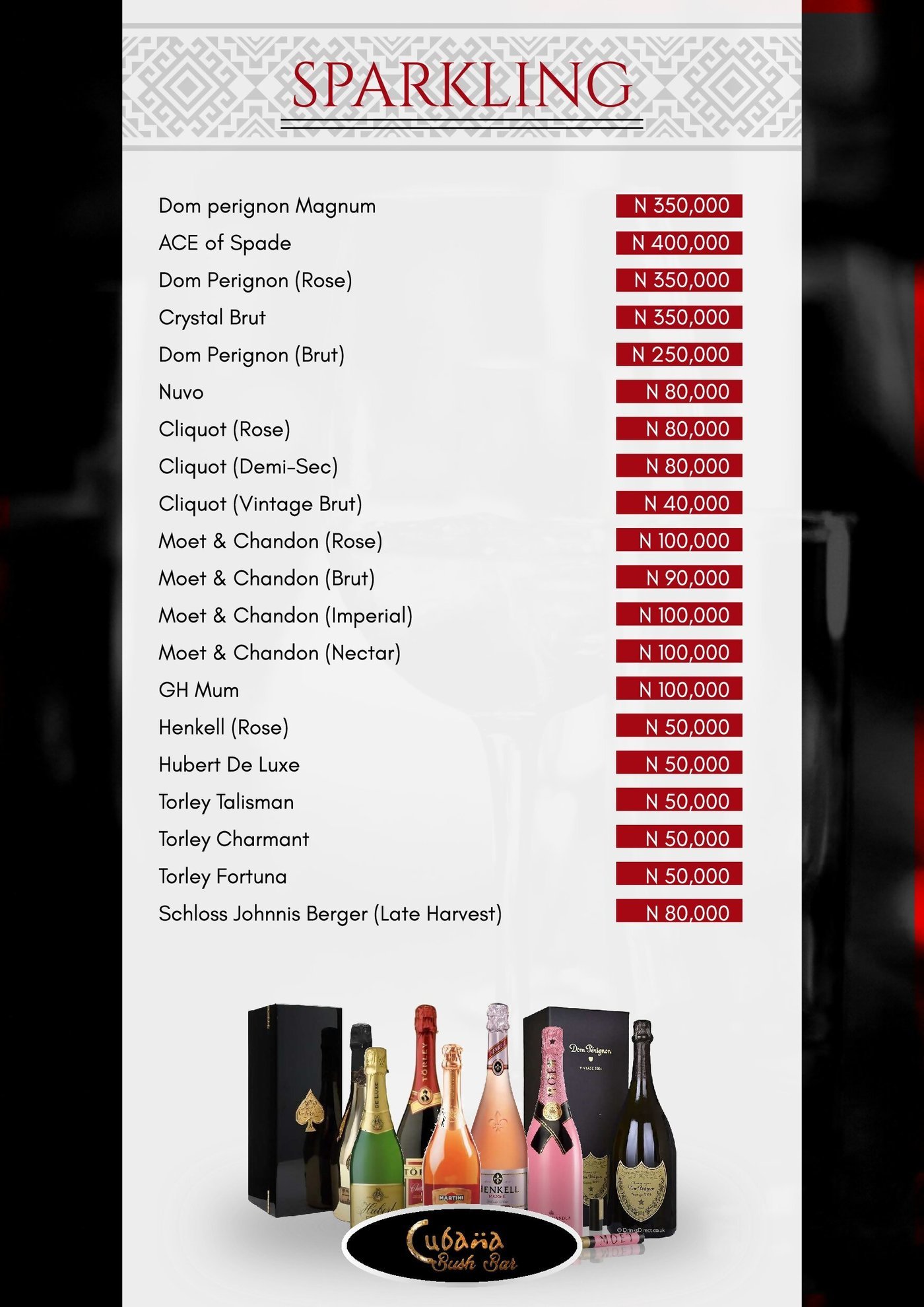 Example High End Bar Menu