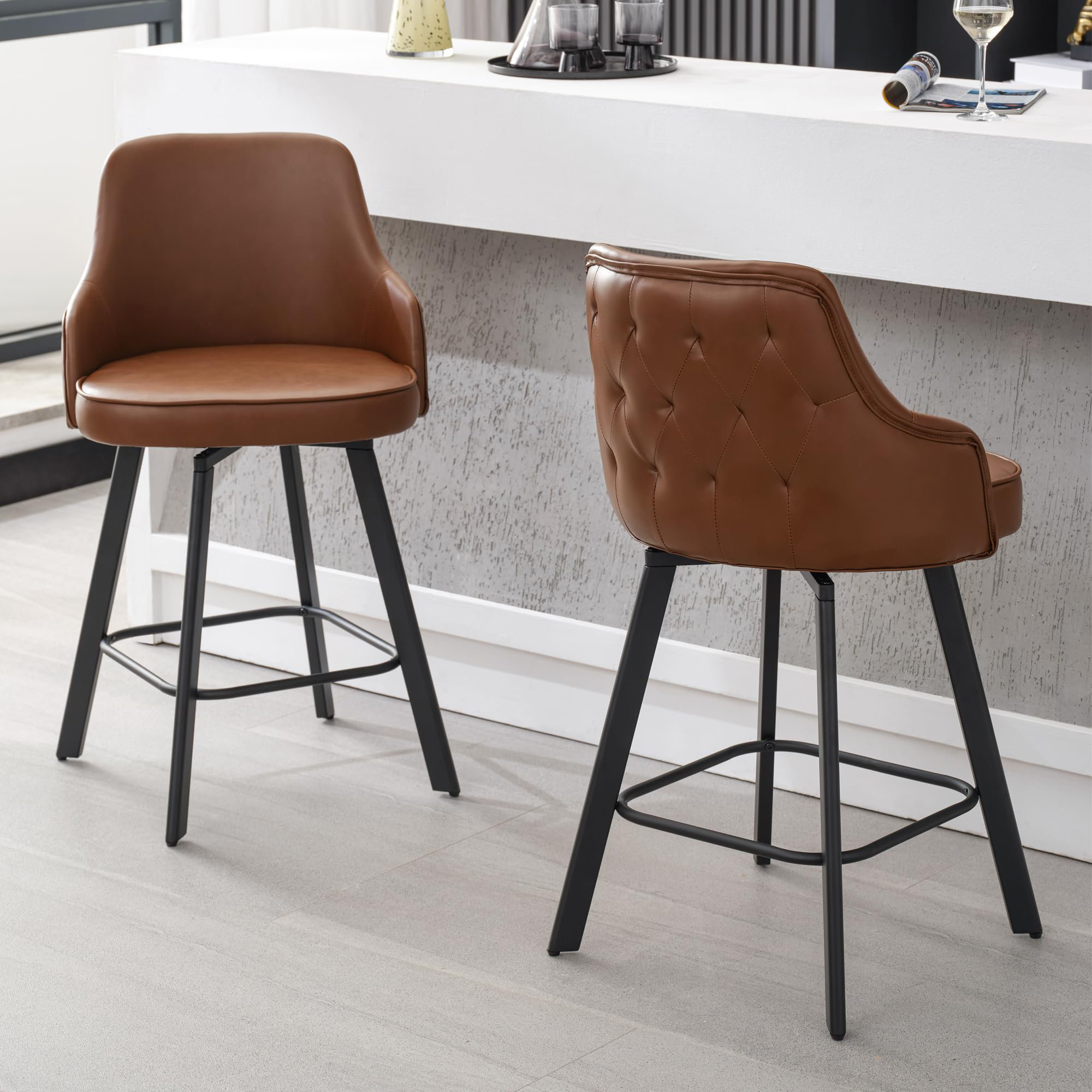 Amazon.com: Tatub 26" Swivel Leather Bar Stools Set of 2, Brown Counter ...